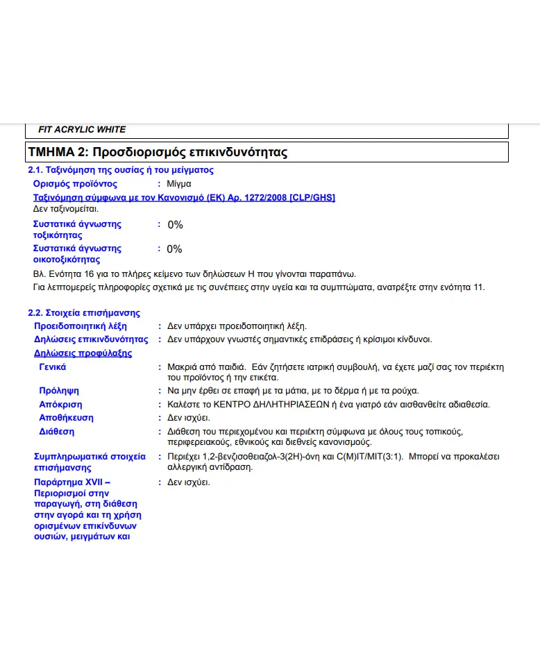 Έχει ισχυρή πρόσφυση, καλή καλυπτικότητα και λευκότητα.