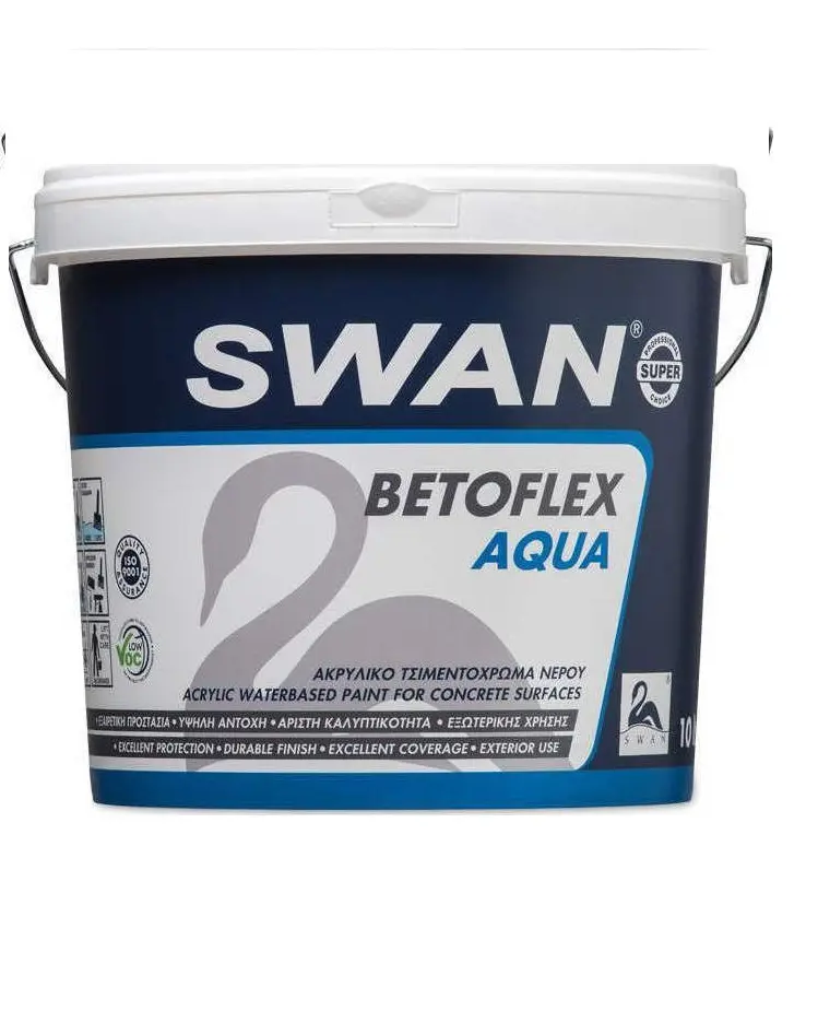 Το Ακρυλικό Τσιμεντόχρωμα Νερού Γκρί Betoflex Aqua 10 lt Swan είναι ακρυλικό τσιμεντόχρωμα νερού εξαιρετικής ποιότητας, εξωτερικής χρήσης.