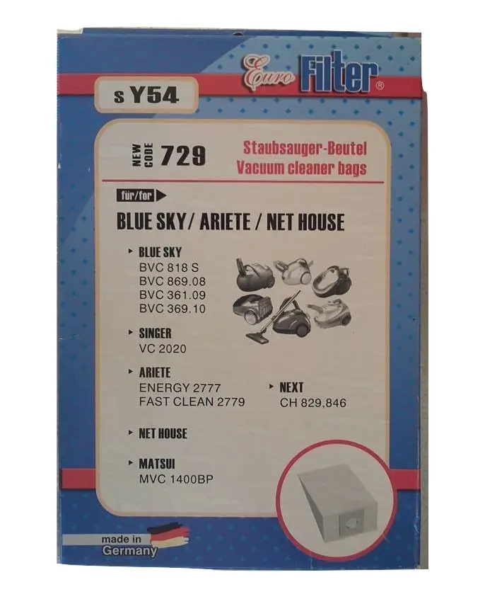 Οί Ανταλλακτικές Σακούλες Ηλεκτρικής Σκούπας SY 54 Blue Sky Ariete Net House Eurofilter είναι γερμανικής προέλευσης.