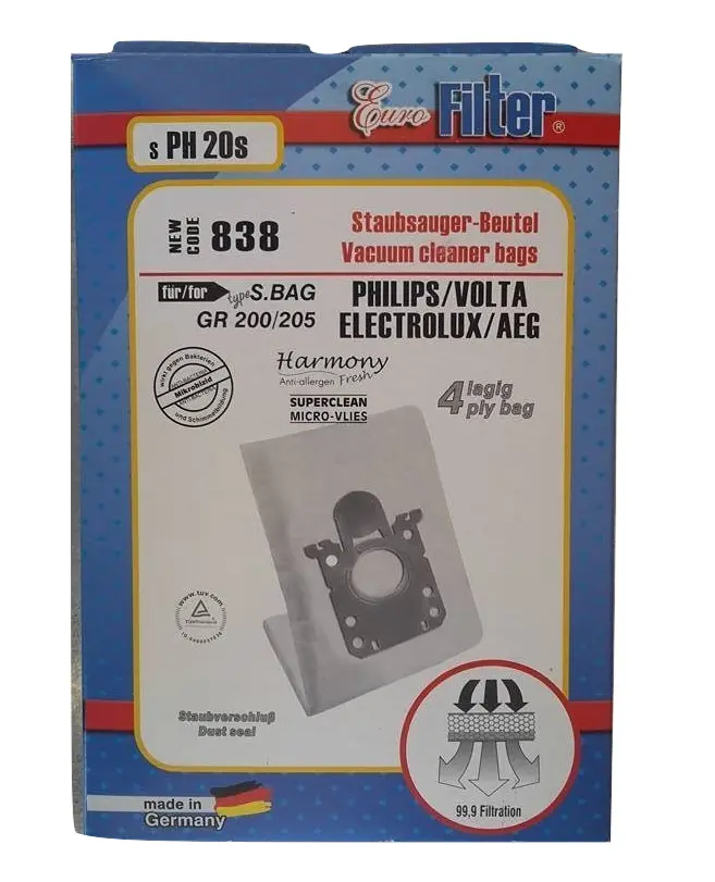 Οί Ανταλλακτικές Σακούλες Ηλεκτρικής Σκούπας SPH 20 S Philips Volta Electrolux Aeg Eurofilter είναι γερμανικής προέλευσης.