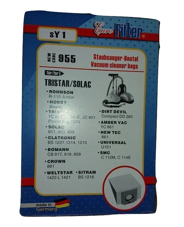 Οί Ανταλλακτικές Σακούλες Ηλεκτρικής Σκούπας SY1 Tristar Solac Rhonson Hobby Eurofilter είναι γερμανικής προέλευσης.