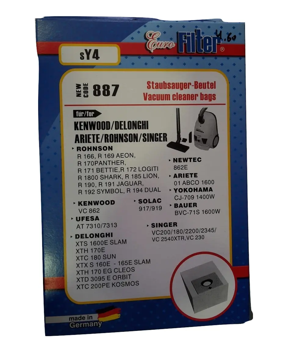 Οί Ανταλλακτικές Σακούλες Ηλεκτρικής Σκούπας SY4 Kenwood Delonghi Ariette Rohnson Singer Eurofilter είναι γερμανικής προέλευσης.