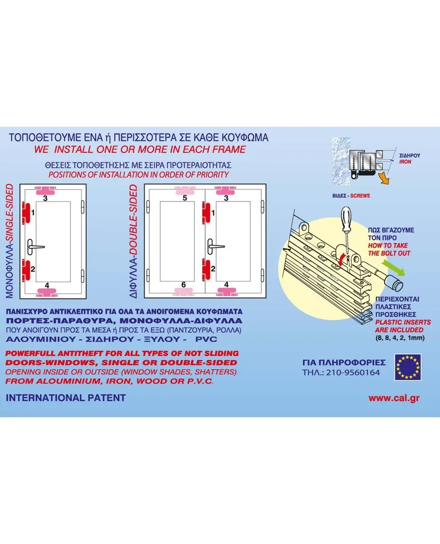 Η Ασφάλεια Πόρτας Αλουμινίου Καφέ Doublex-S 24971488 Cal είναι ή ιδανική επιλογή για απόλυτη θωράκιση ανοιγόμενων και συρώμενων θυρών αλουμινίου.