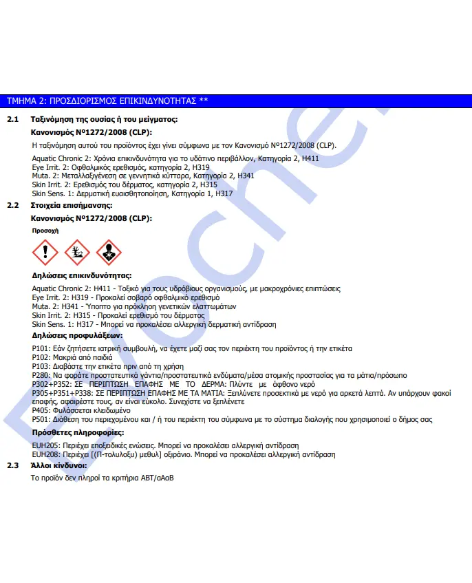 Εξαιρετική αντοχή στα περισσότερα χημικά