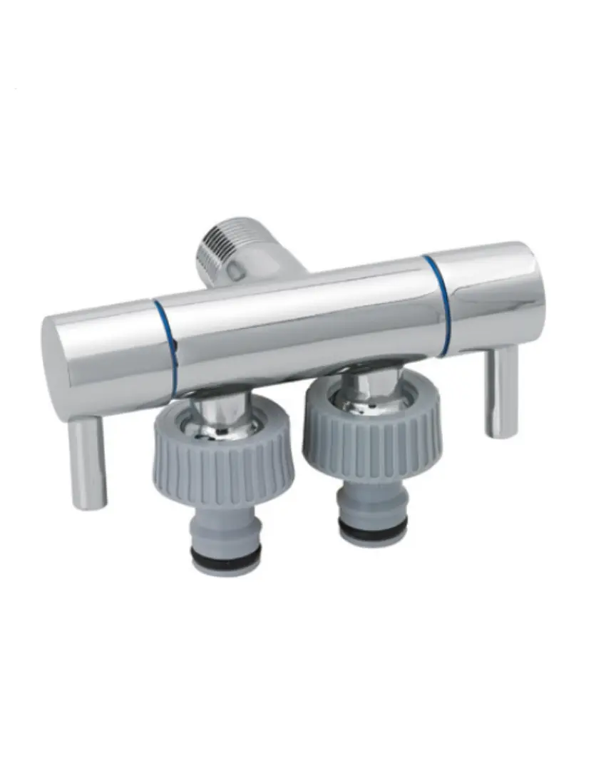 Διακόπτης Νερού Διπλής Εξαγωγής Μισόστροφος Μέ Ροζέτα Φ60 Καί 2 Ρακόρ 39-02645 Siroflex