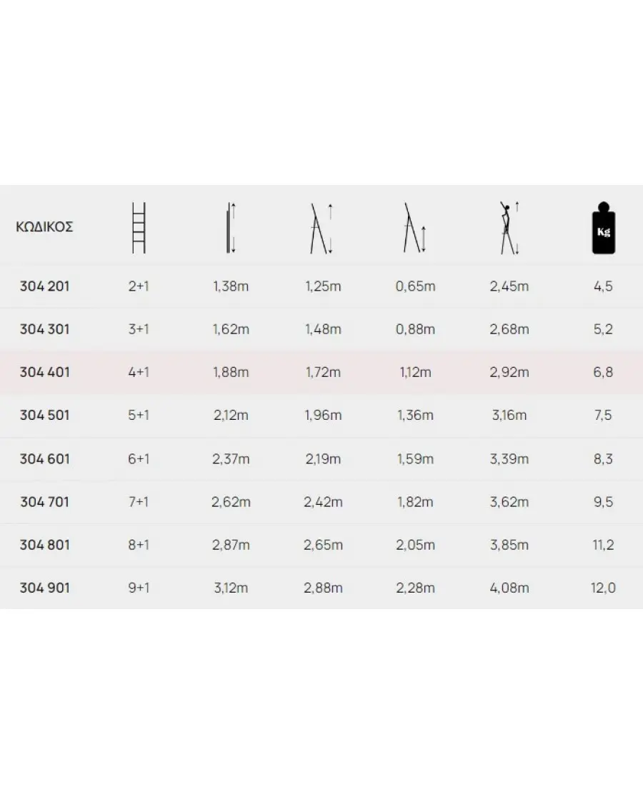 Φάρδος σκαλοπατιών 85 mm καί ολικό βάρος κατασκευής 12.00 κιλά.