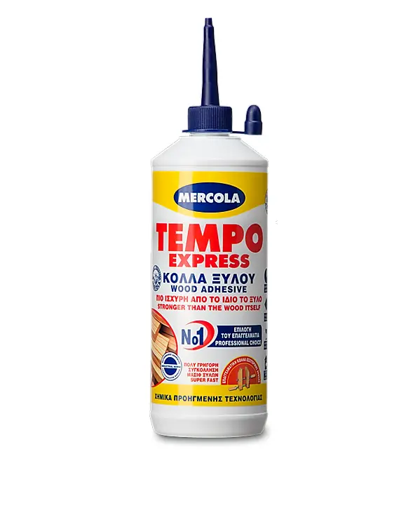 H Επαγγελματική Κόλλα Ξύλου Κρυσταλλική Tempo Express 750 gr Mercola είναι υδατοδιαλυτή λευκή κόλλα ξύλων, βάσεως PVAC κατάλληλη για συγκολλήσεις υψηλών απαιτήσεων.