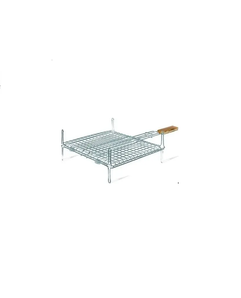 Η Σχάρα Ψησίματος Χρωμίου Καρέ Γ Μέ Πόδια Καί Ξύλινη Λαβή 29 Χ 33 Εκατοστά 10053 Βιοφάν έχει ύψος 7 εκατοστά καί άριστη ποιότητα κατασκευής.