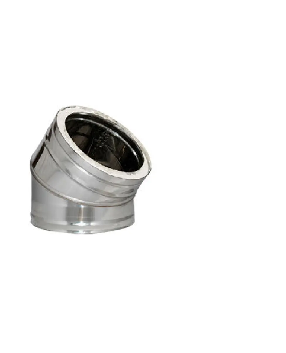Η Καμπύλη Γωνία Σωλήνας Καπνοδόχου 45 Μοιρών Διπλού Τοιχώματος Ανοξείδωτη Φ180-Φ230 Aisi 304 BA Inoxshell έχει μόνωση κεραμοβάμβακα πάχους 25 χιλιοστών μέ πυκνότητα 96 κιλά ανά κυβικό μέτρο.
