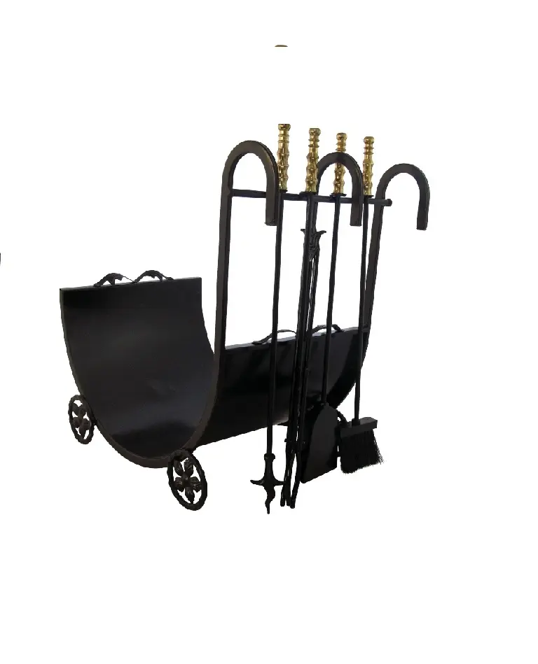 Ξυλιέρα Μεγάλη Μαύρη Έλκηθρο με 4 Εργαλεία Τζακιού 12879 Βιοφάν