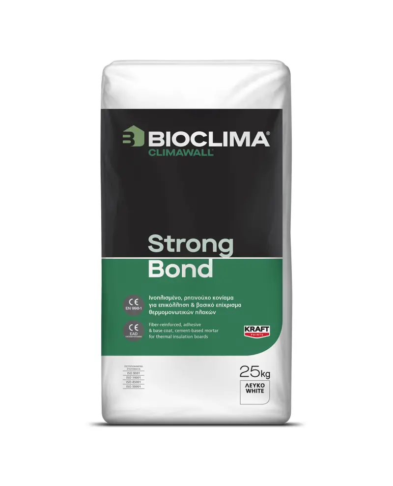 Ή Κόλλα Θερμομονωτικών Πλακών 25 Κιλών Γκρί Strong Bond Climawall Bioclima είναι ένα Ινοπλισμένο,