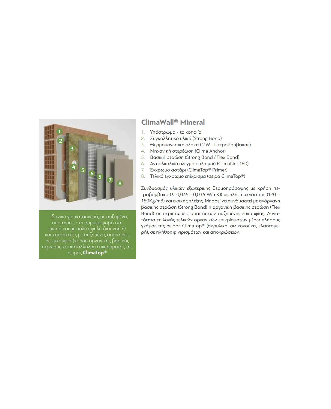 Παρέχει πολύ υψηλή διαπνοή και κατασκευές με αυξημένες απαιτήσεις σε ευκαμψία (χρήση οργανικής βασικής στρώσης και κατάλληλου επιχρίσματος της σειράς ClimaTop® )