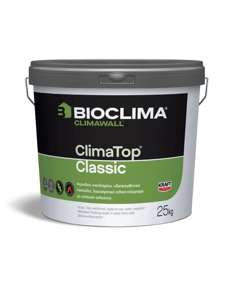 Το ClimaTop® Classic είναι ένα διακοσμητικό, έτοιμο προς χρήση, σε μορφή πάστας, οργανικό, ακρυλικό, ινοπλισμένο, διαπνέον τελικό επίχρισμα ενισχυμένο με σιλικόνη.