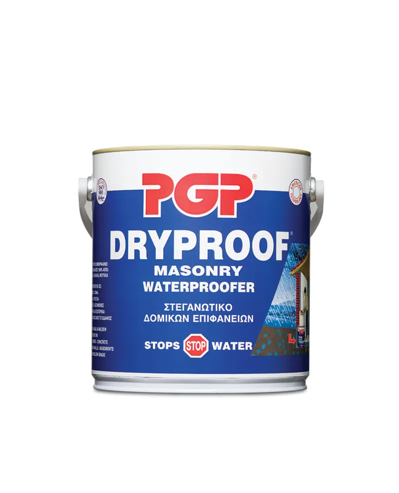 Το Μονωτικό Στεγανωτικό Επίχρισμα Παντός Τύπου Dry Proof 4 Κιλών Pgp είναι ένα μοναδικό τσιμεντοειδές στεγανωτικό χρώμα - επίχρισμα, έτοιμο προς χρήση, για δομικές επιφάνειες που χρειάζονται αποτελεσματική προστασία από την υγρασία πάνω ή κάτω από το έδαφος εσωτερικών ή εξωτερικών χώρων.