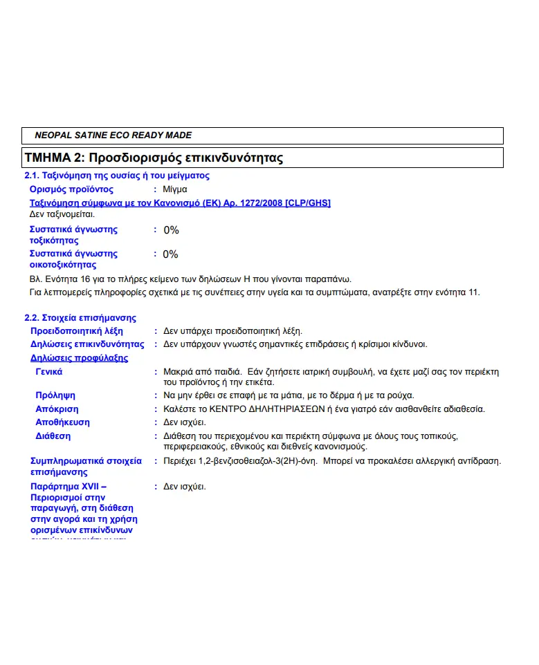 Το Neopal Satine Eco είναι πιστοποιημένο απο το ΑΣΑΟΣ και πληροί τα κριτήρια του Οργανισμού Απονομής Οικολογικών Σημάτων της Ε.Ε.