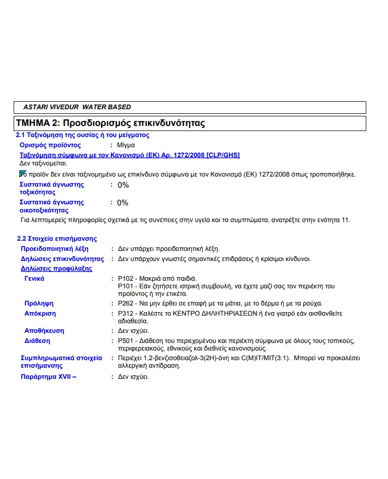 Είναι άοσμο, φιλικό για το περιβάλλον και τον χρήστη και για αυτό συνιστάται για το αστάρωμα εσωτερικών χώρων και ιδιαίτερα για κλειστούς χώρους που κατοικούνται.
