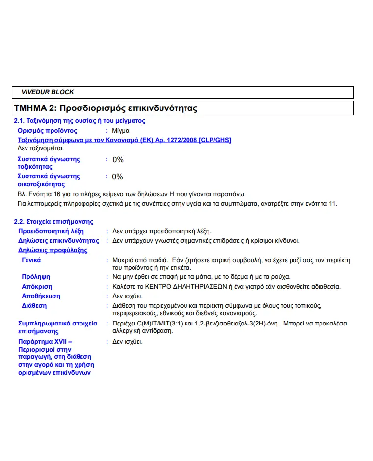 To VIVEDUR BLOCK διατίθεται σε λευκό σε συσκευασίες των 750ml, 3lt και 10lt.