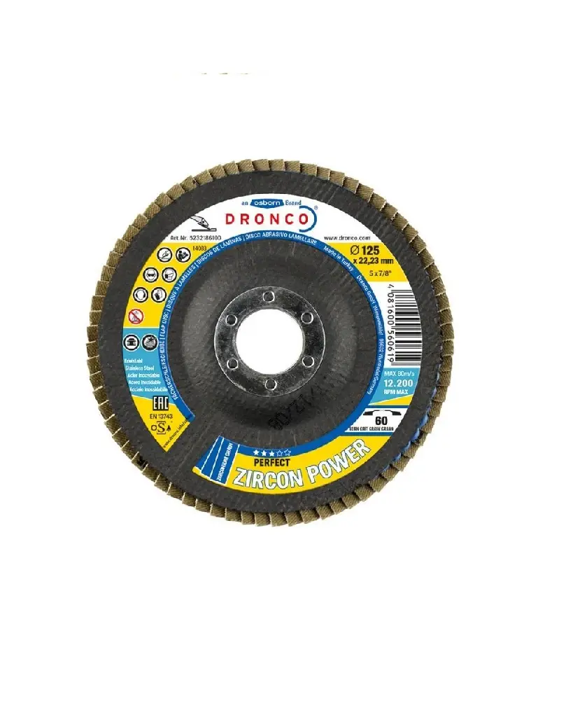 Πολύπτερο Λείανσης Κωνικό Ανοξείδωτου ZIRCON POWER No125x22,3mm No 60 Dronco