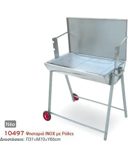 Περιλαμβάνει σχάρα, ρόδες, χερούλια, αντιρίδες στήριξης.