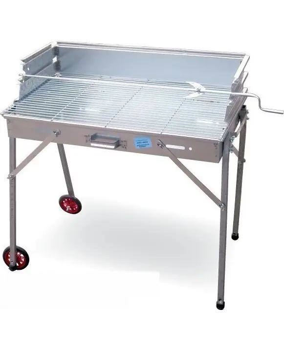 Περιλαμβάνει σχάρα, ρόδες, χερούλια, αντιρίδες στήριξης.