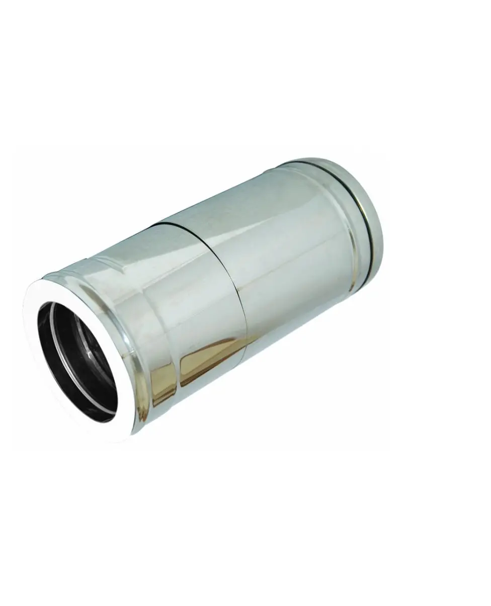Η Πτυσσόμενη Σωλήνα Καπνοδόχου Διπλού Τοιχώματος Ανοξείδωτη 1 Μέτρου Φ150-Φ200 Aisi 316 BA Αντιμαγνητικό Inoxshell έχει μόνωση κεραμοβάμβακα πάχους 25 χιλιοστών μέ πυκνότητα 96 κιλά ανά κυβικό μέτρο.