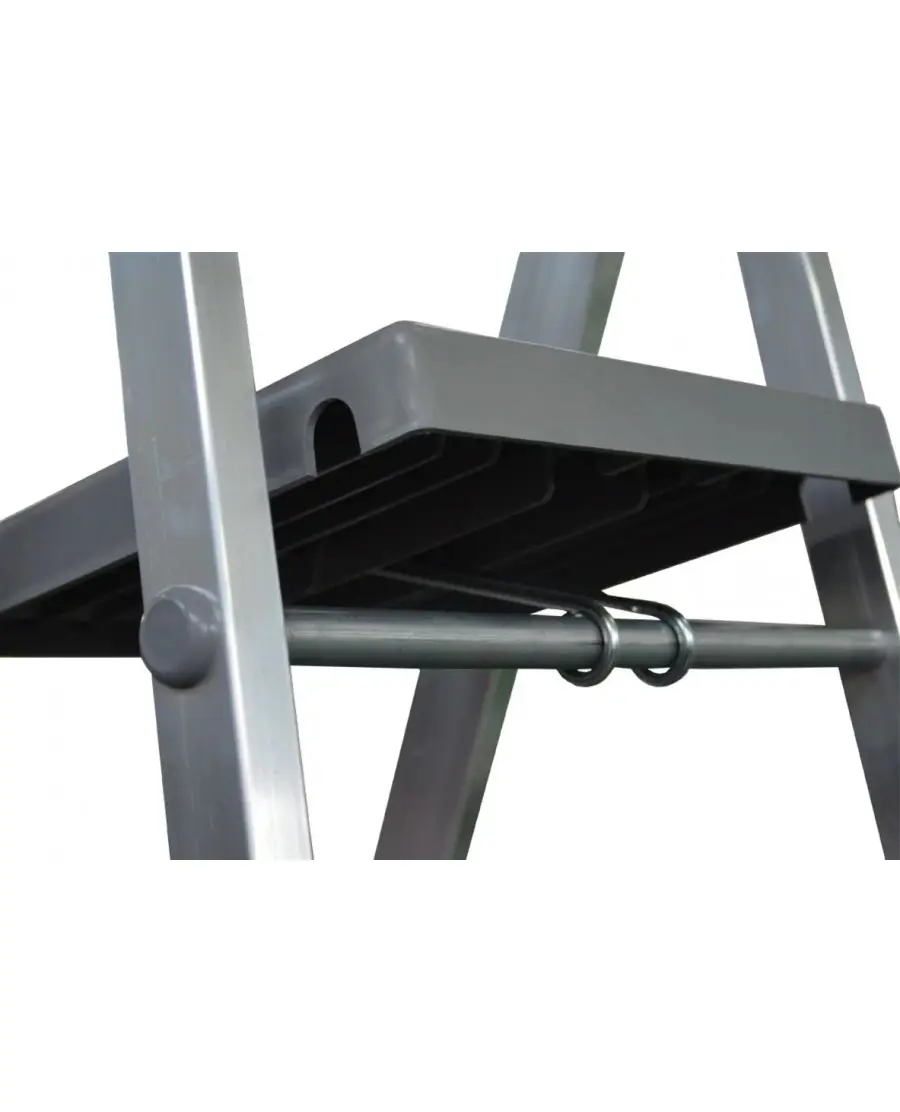 Έχει διαγραμμισμένα σκαλοπάτια αλουμινίου με διπλά πριτσίνια για σταθερό πάτημα και ιμάντες ασφαλείας & χιαστί αλουμινίου, που ξεκινούν από τα 5 σκαλοπάτια, για ασφαλές άνοιγμα και σταθερότητα.