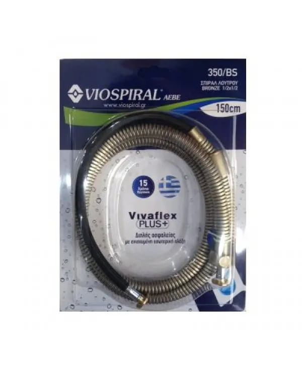 Τό Σπιράλ Μπάνιου Μεταλλικό 1/2΄΄Χ 1/2΄΄ Βαρέως Τύπου Μπρονζέ 00-350/BS Viospiral έχει πλέξη διπλής ασφάλειας καί μήκος 1.5 μέτρα.