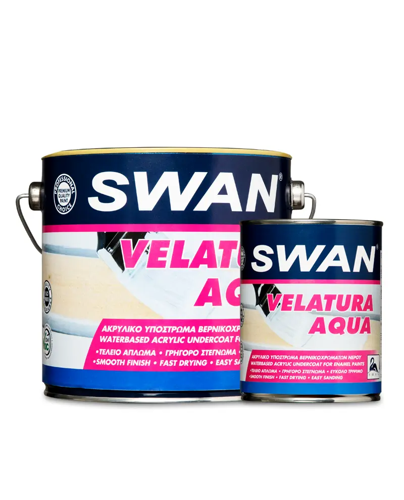 Η Βελατούρα Νερού Swan Aqua 2.5 Lt Evochem είναι ταχυστέγνωτο ακρυλικό υπόστρωμα βερνικοχρωμάτων υδατικής βάσης, κατάλληλο για εσωτερική και εξωτερική χρήση.