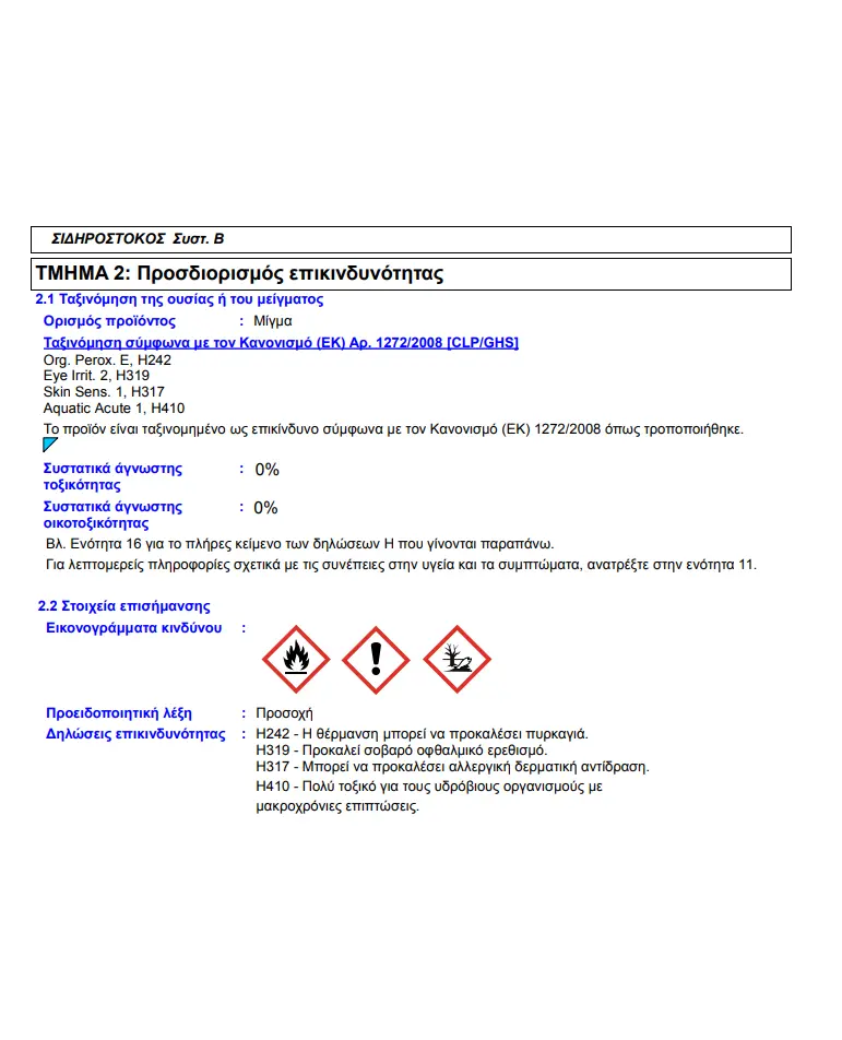 Ο ΣΙΔΗΡΟΣΤΟΚΟΣ σκληρύνεται σε 5-10 λεπτά μετά την προσθήκη σκληρυντικού.