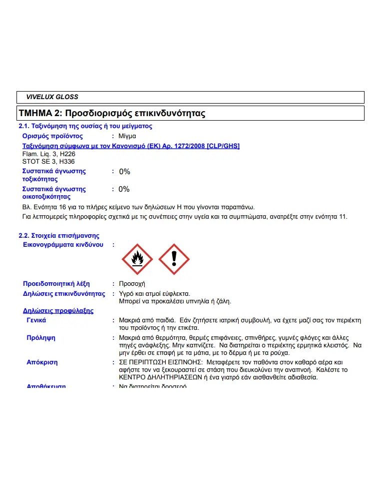 Το VIVELUX διατίθεται σε άχρωμο γυαλιστερό και σατινέ, σε συσκευασίες των 750ml και 2,5lt.