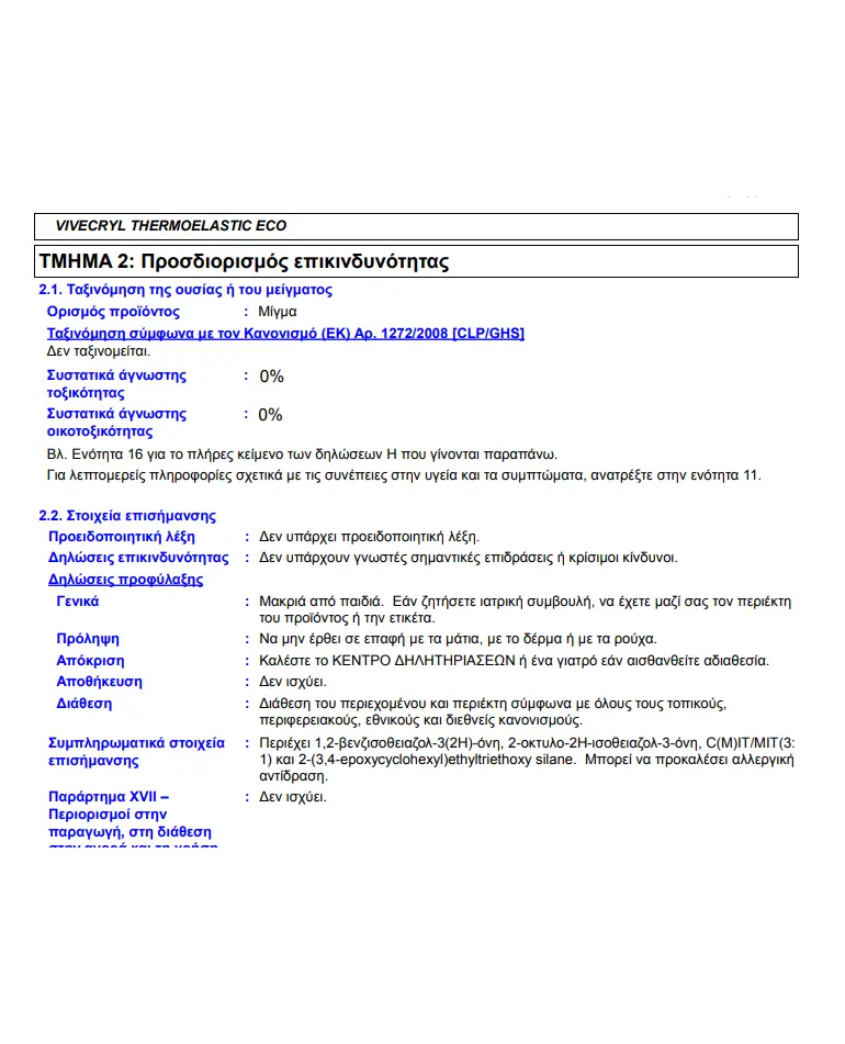 ∆ιατίθεται σε λευκό και σε απεριόριστο αριθμό αποχρώσεων μέσω του συστήματος ΧΡΩΜΟΣΥΝΘΕΣΕΙΣ της Vivechrom σε συσκευασίες των 3lt & 10lt.
