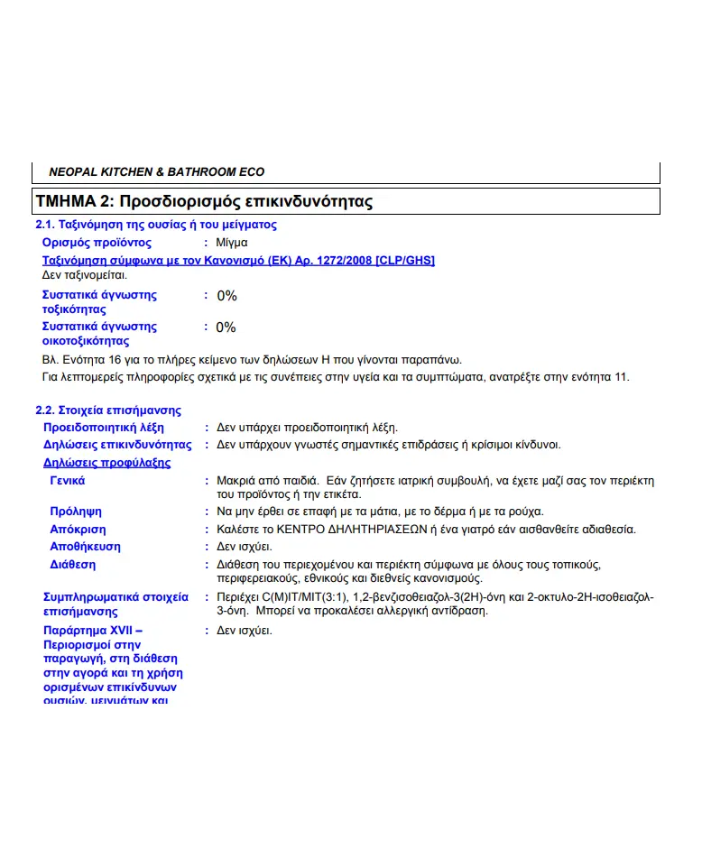 Το NEOPAL KITCHEN & BATHROOM διακρίνεται για τη μεγάλη του καλυπτικότητα και τις εξαιρετικές αντοχές του στο συχνό πλύσιμο.