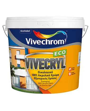 To Ακρυλικό Χρώμα Λευκό Vivecryl Eco 10lt Βιβεχρώμ είναι οικολογικό ακρυλικό χρώμα ματ εξωτερικής χρήσης με εξαιρετικές αντοχές στις δυσμενείς καιρικές συνθήκες και μεγάλη διάρκεια ζωής.