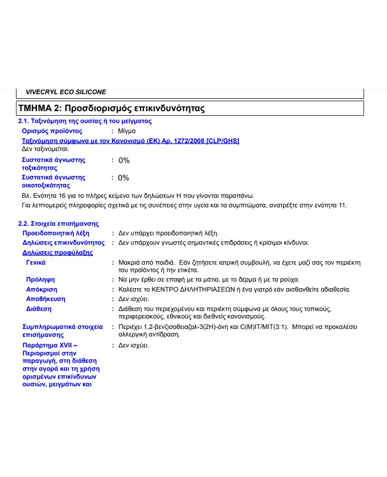 ∆ιατίθεται σε λευκό και σε απεριόριστο αριθμό αποχρώσεων μέσω του συστήματος ΧΡΩΜΟΣΥΝΘΕΣΕΙΣ της Vivechrom σε συσκευασίες των 3lt & 10lt.