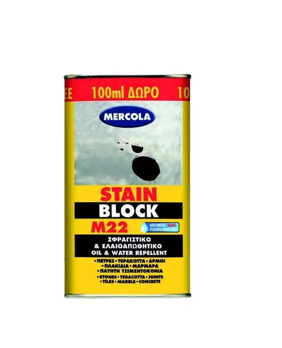 Το Διαφανές Σιλικονούχο Αδιαβροχοποιητικό Διαλύτου 1lt M22 Stain Block Mercola είναι διαφανές,