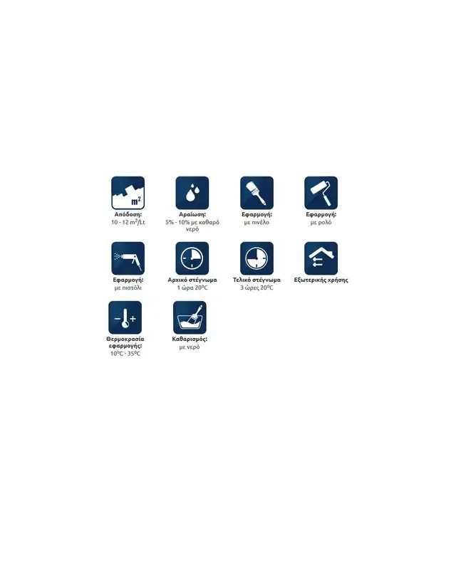 Έχει άριστη καλυπτικότητα, εξαιρετική πρόσφυση, απλώνεται εύκολα και έχει μεγάλη αντοχή στις δυσμενείς καιρικές συνθήκες και στην ατμοσφαιρική ρύπανση.