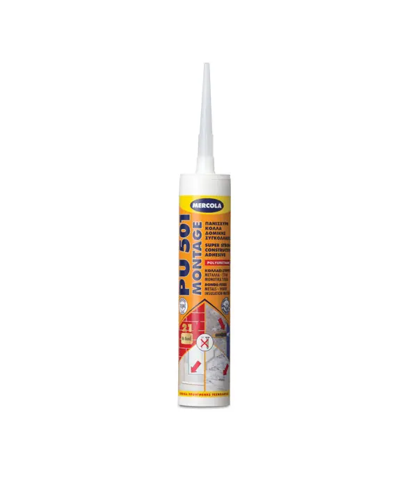Ή Κόλλα Στερέωσης Πολυουρεθάνης 290 ml Pu 501 Montage Mercola έχει εξαιρετικές μηχανικές και συγκολλητικές ιδιότητες,