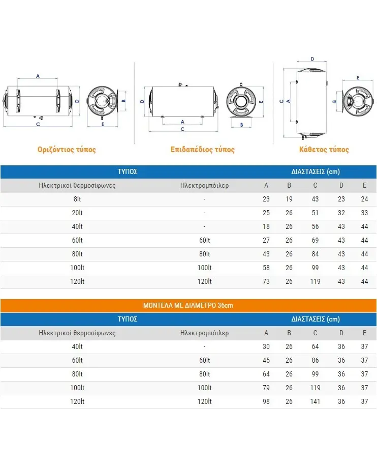Έχει ηλεκτρική αντίσταση με αποσπώμενη φλάντζα και ολόσωμο λάστιχο,καί έχει καθαρή ονομαστική χωρητικότητα.